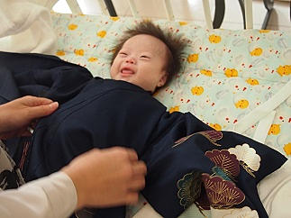 美人さんに着せてもらって上機嫌とは・・・・さすが俺の子(笑)